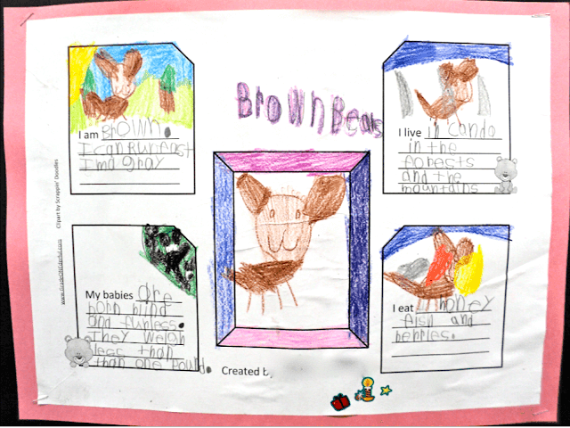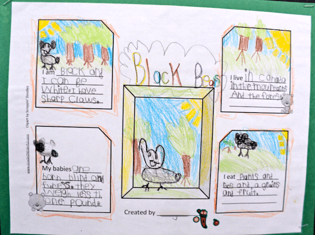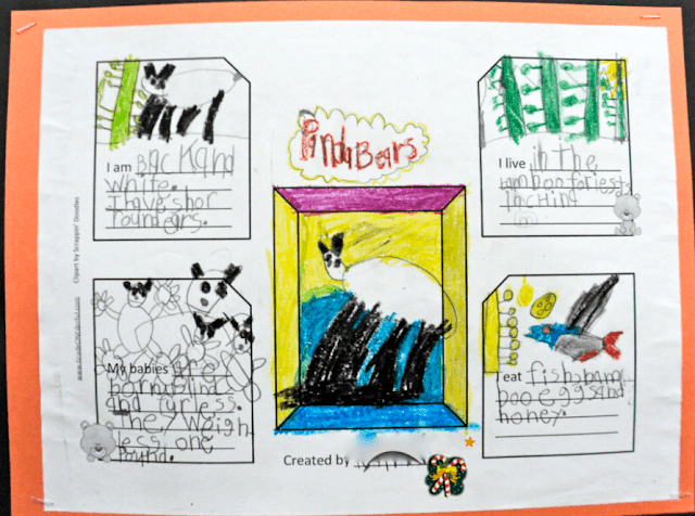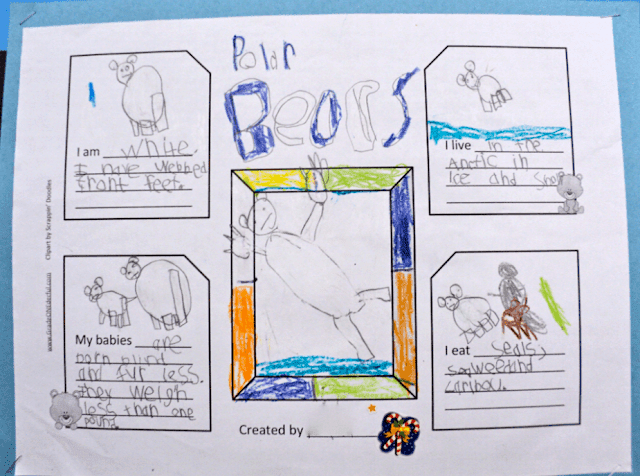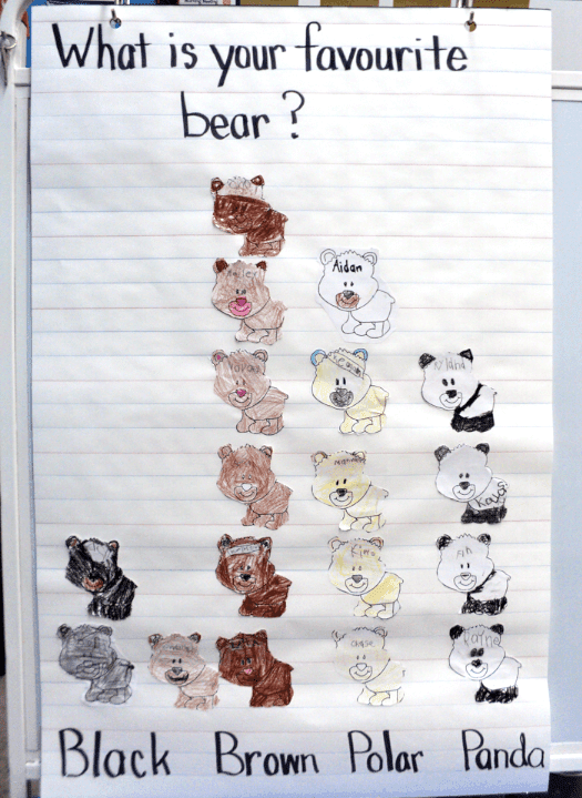 We spent a week working on bear posters. The kids worked in groups of their choice to learn more about polar bears, panda bears, black bears or brown bears. First we graphed their favourite bears: