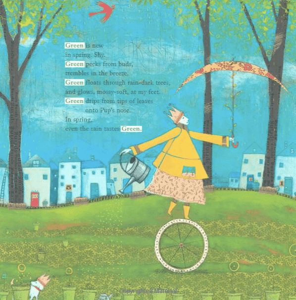 The book is a poem and Joyce Sidman has done an outstanding job depicting the colours of the seasons. She involves all of our five senses until you are completely immersed in the feelings and sounds and scents of the seasons.