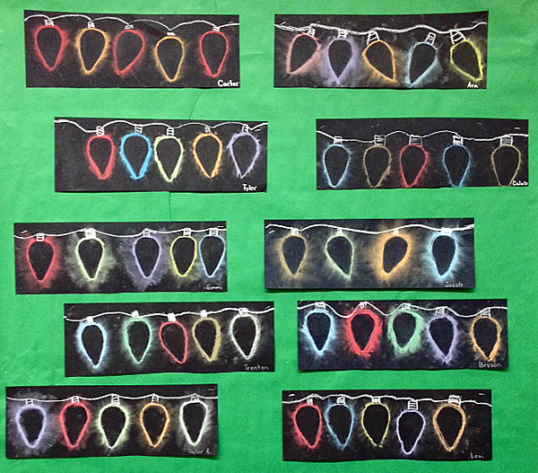 I thought this was a unique way to create a Christmas light picture. The kids used crayons and did an awesome job!