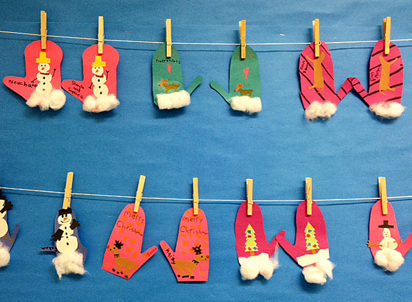 These mittens were done by another Kindergarten class. They used templates for the mitten shapes. I’m not sure how they got the picture on each mitten so identical. Perhaps they had tracers? This would be a great lesson on symmetry, too!