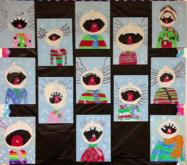 Catching snowflakes on your tongue: I think these are just so sweet. The artists used oil pastels to create these beauties!