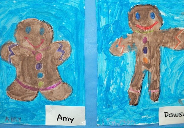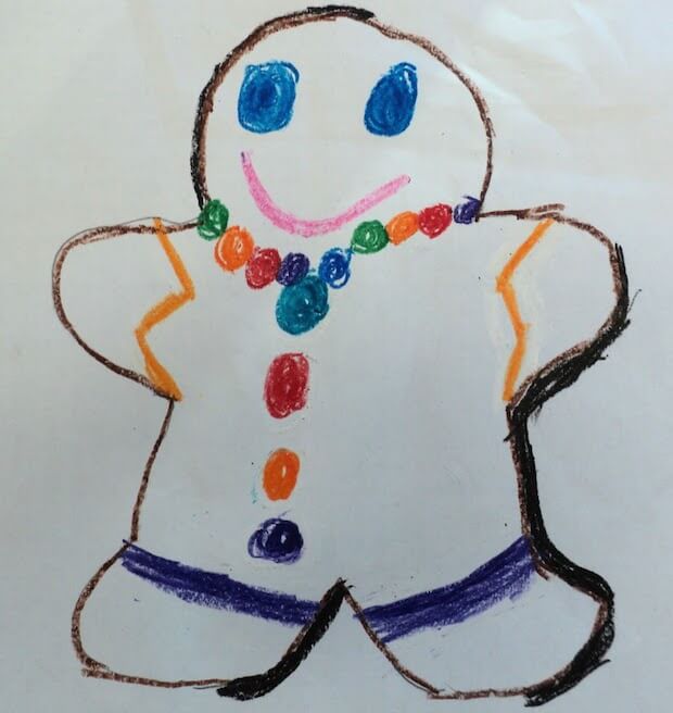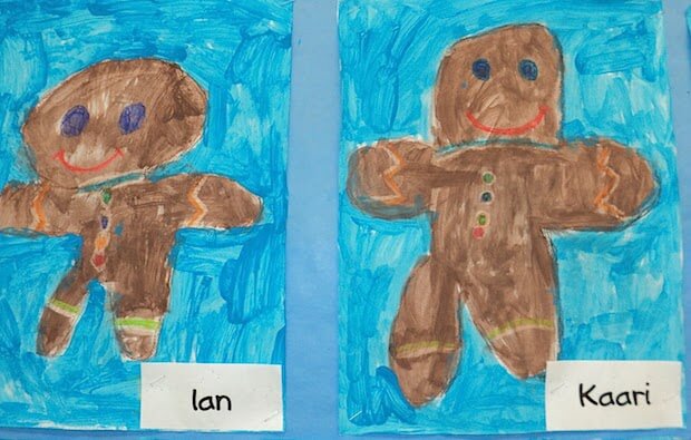 My kids found it very challenging to free-hand draw a gingerbread shape, so quite a few of them opted to trace a gingerbread.