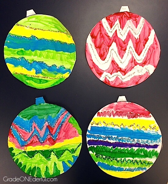 - Show the kids some pictures of ornaments for a little inspiration. There are lots right here. Talk about the different designs and colour choices.