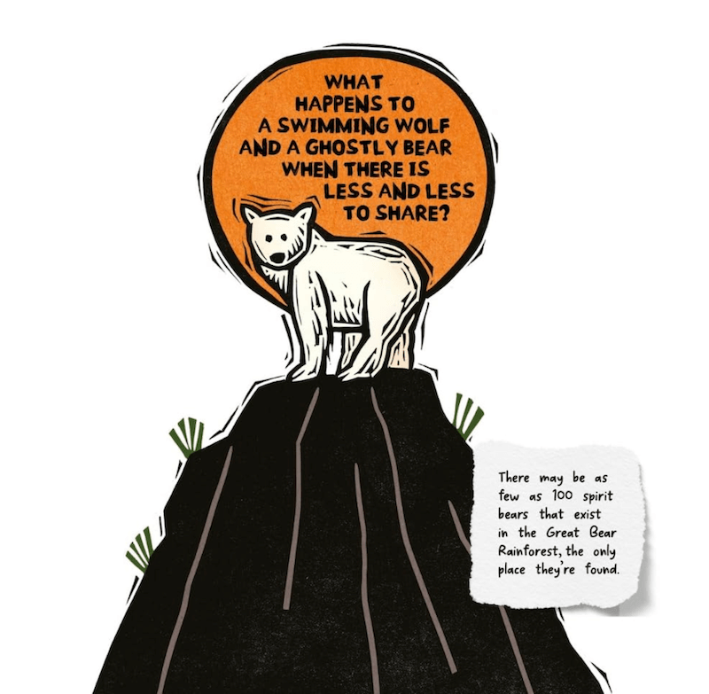 I love that it features the Spirit Bear and the Sea Wolf, two very special and mystical creatures that instantly add mystery and wonder.