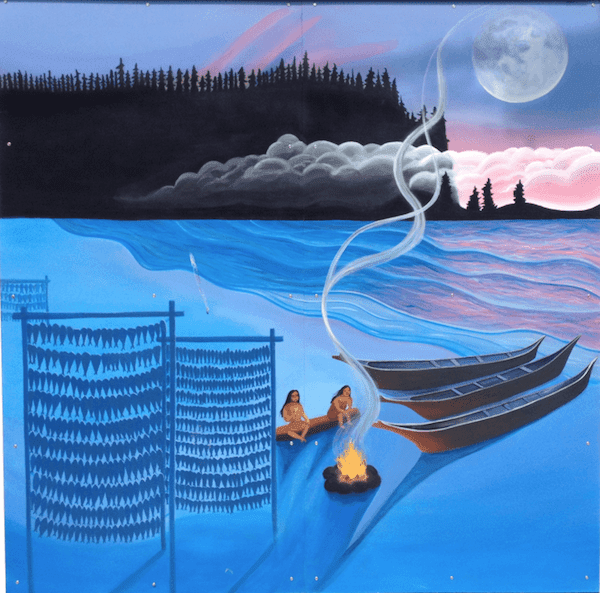 They’re part of a 250-metre long panel of First Nations murals that were erected in a celebratory countdown to the completion of an 11-year-old undertaking to clean up the very toxic land and seabed of Rock Bay.