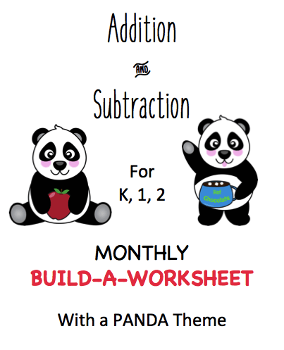 I’ve made 2 sheets each for addition, subtraction and fact families (6 different sheets). Then I added 12 different panda images to each set. Since each panda corresponds to a month of the year it means that there’s a monthly set of math sheets.
