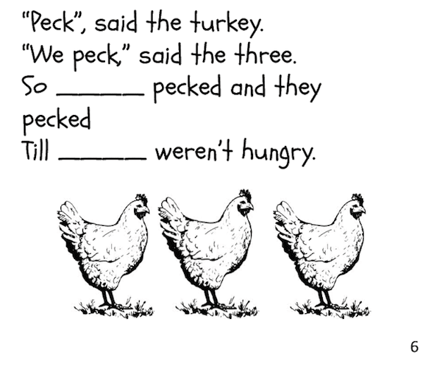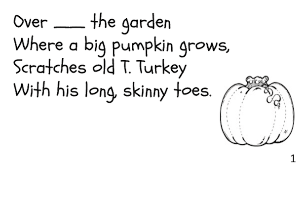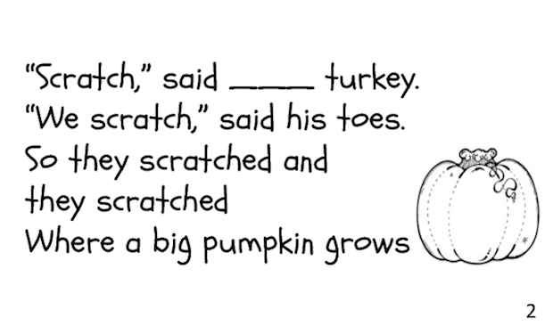 Years ago I inherited a hand-made big book called “Old T. Turkey”. It was written by someone called C. George, but I really don’t have any details. We read the story all week, then I printed out the file below and made booklets for the kids. We read the story some more and they printed in the missing words and coloured in the pics.