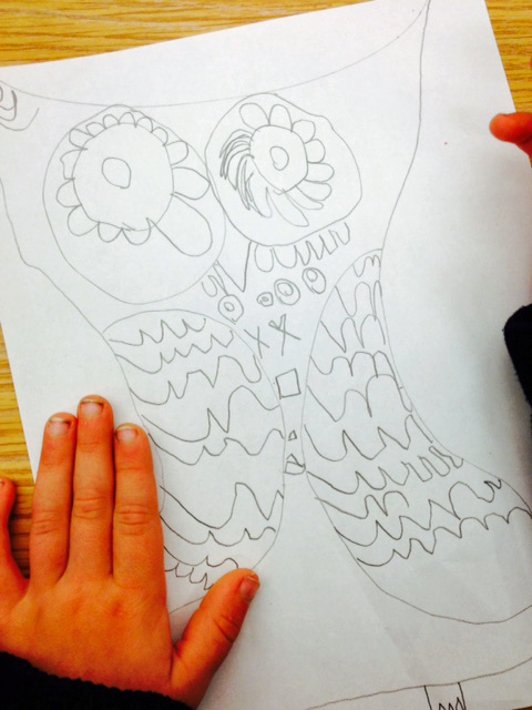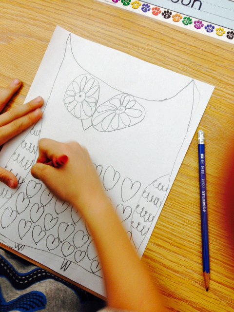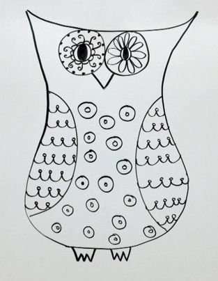After we had the basic shape with the wings, eyes and beak, I told them to decorate the rest of the owl any way they liked.