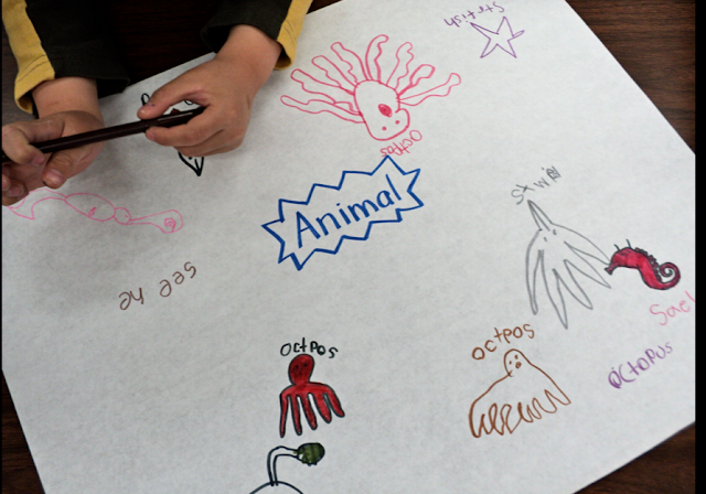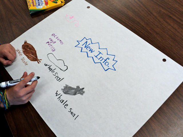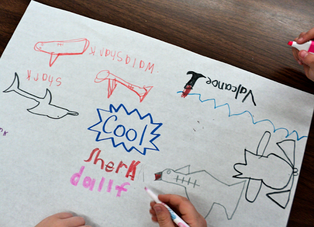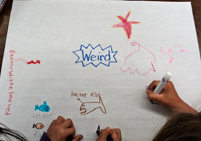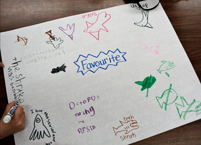 If you haven’t tried Graffiti notes yet, you must! The kids talked about the ocean and its creatures constantly while they were drawing. I think it’s an excellent way to encourage them to extend their thinking and vocabulary.