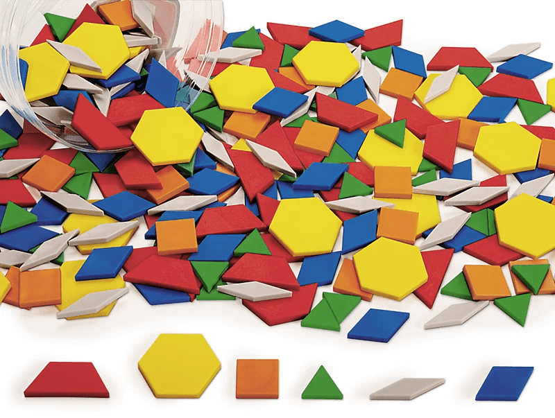 My kids are so into these right now. I have mats that don't tell you what shapes to use when covering with the pattern blocks. Then the kids have to count how many of each of the blocks that were used and give the total. They are wonderful, but so old I don't know where they came from!Jenny