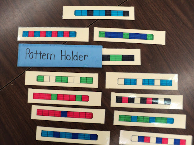 One of the best ways to review patterns is with this pattern train I use each day. It’s quick, fun and an easy way to reinforce pattern knowledge. And young kids get excited about predicting what the new pattern will be.