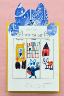 When these dried we used the Pete the Cat template to cut out Pete faces and use as page toppers. Here’s the final result!