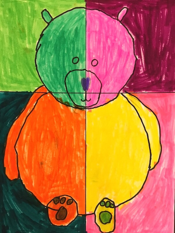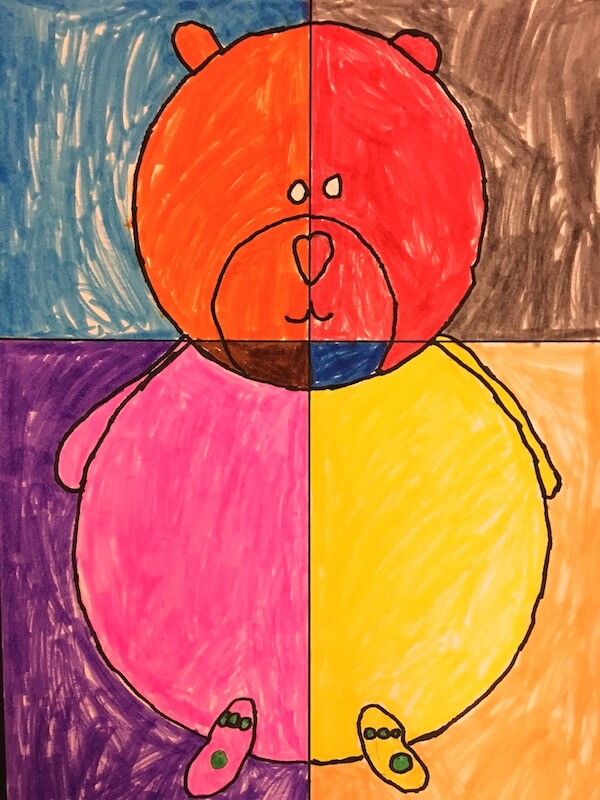 Inside: Directions for making teddy bear pop art.